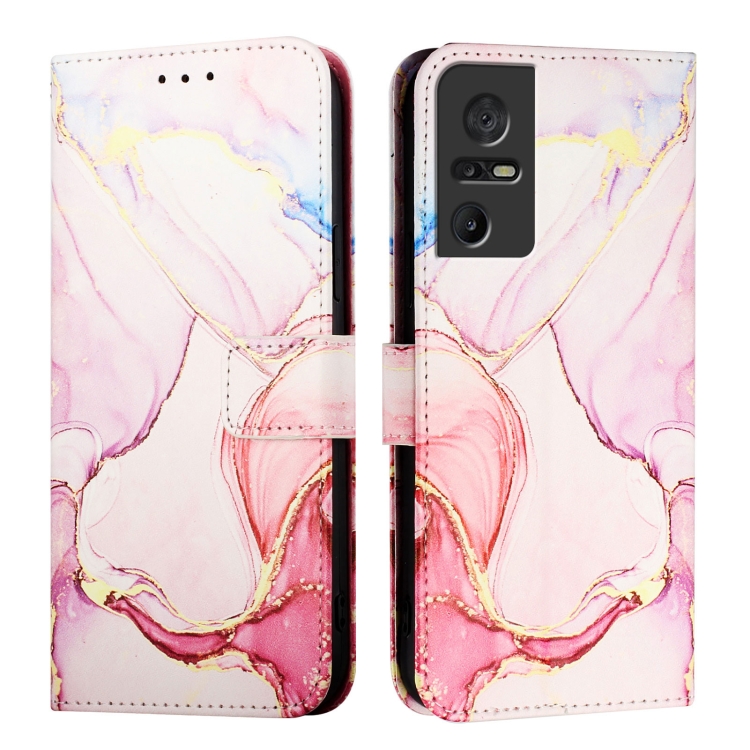 Funda de Cuero con Tapa para TCL 40 Se Pt003 con Patrón de Mármol (Oro Rosa)