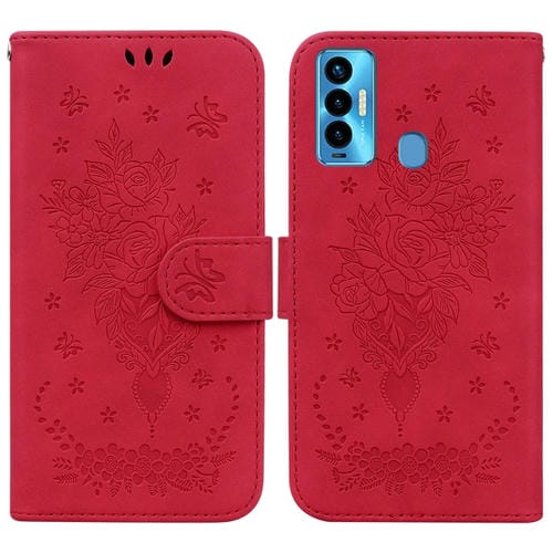 Funda para Tecno Camon 18I Butterfly Rose Foothip en Relieve de Cuero (Rojo)