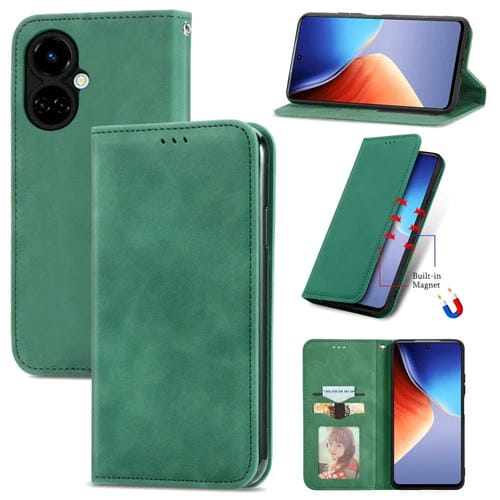 Funda Magnética de Cuero para Tecno Camon 19 Retro Skin Feel (Verde)