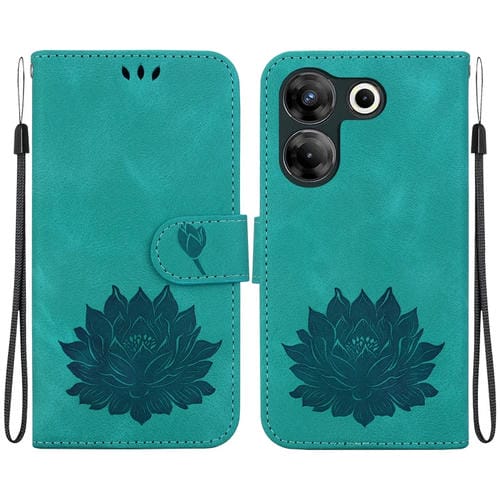 Funda de Cuero para Tecno Camon 20 Pro 5G Lotus en Relieve (Verde)