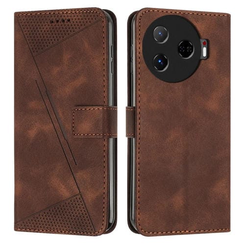 Funda de Cuero para Tecno Camon 30 Pro 5G Dream Triangle con Cordón (Marrón)