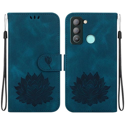 Funda de Cuero para Tecno Pop 5 LTE con Relieve Lotus (Azul Oscuro)