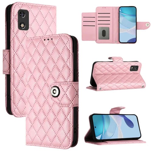 Funda de Cuero para Tecno Pop 5C con Tapa Textura Rómbica y Cordón (Rosa)
