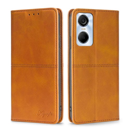 Funda de Cuero para Tecno Pop 6 Pro con Tapa Horizontal Magnética Textura de Vaca (Marrón Claro)