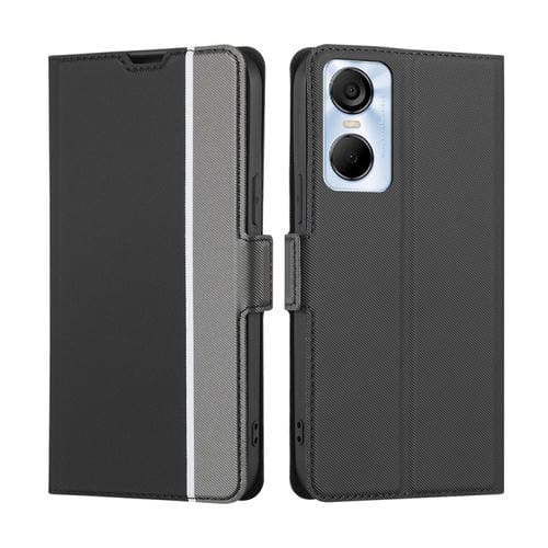 Funda de Cuero para Tecno Pop 6 Pro con Textura Twill y Hebilla Lateral (Negro)