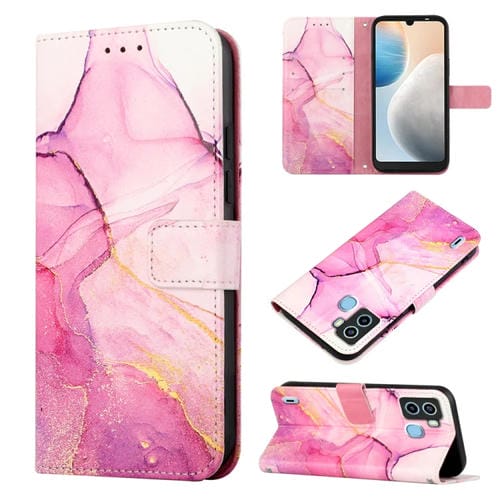 Funda para Tecno Pop 6 PT003 con Tapa de Cuero y Patrón Mármol (Oro Rosa Púrpura)