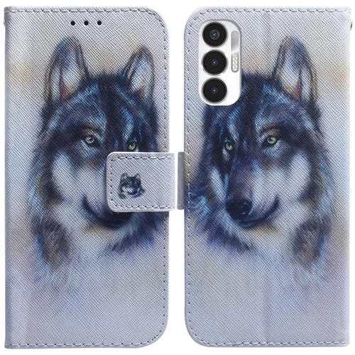 Funda de Cuero para Tecno Pova 3 Le7 con Dibujo Coloreado (Lobo Blanco)