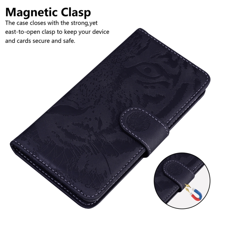 Funda de Cuero para Tecno Spark 10 Pro con Patrón Tiger Embossing Flip (Negro)