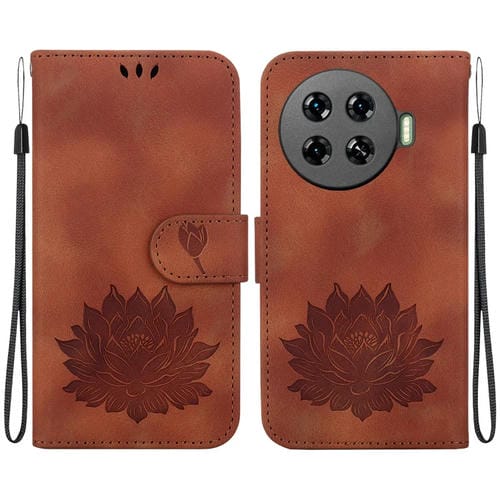 Funda de Cuero para Tecno Spark 20 Pro+ con Relieve de Loto (Marrón)
