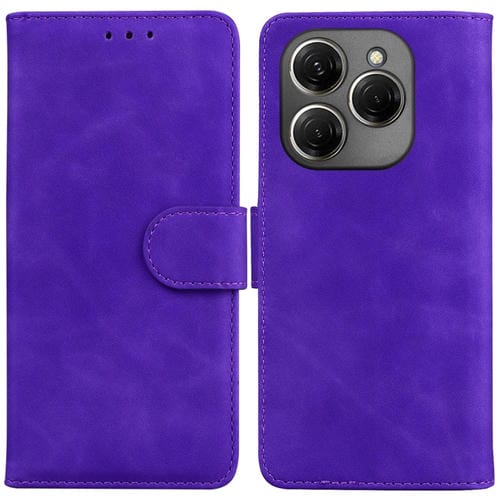 Funda de Cuero Flip para Tecno Spark 20 Pro Skin Feel Pure Color (Púrpura)