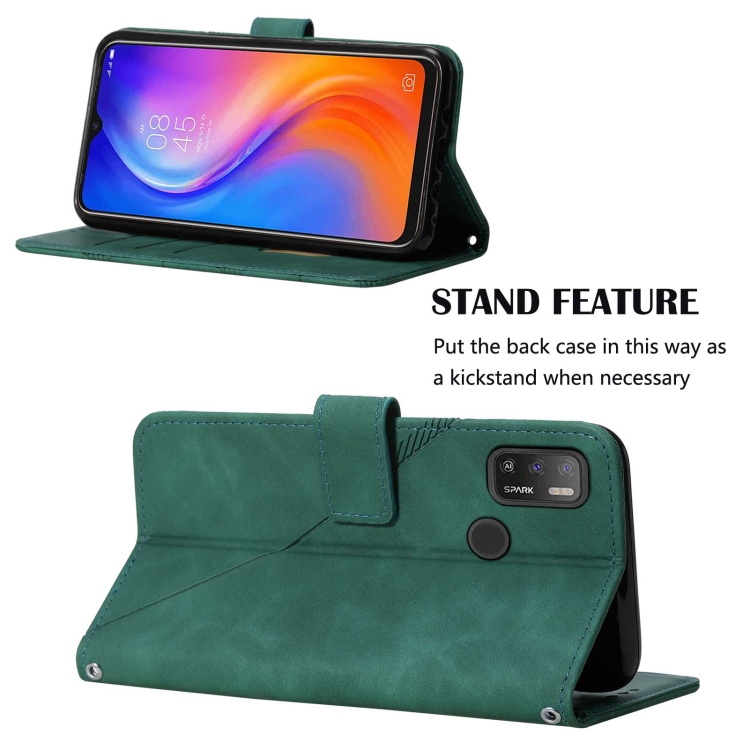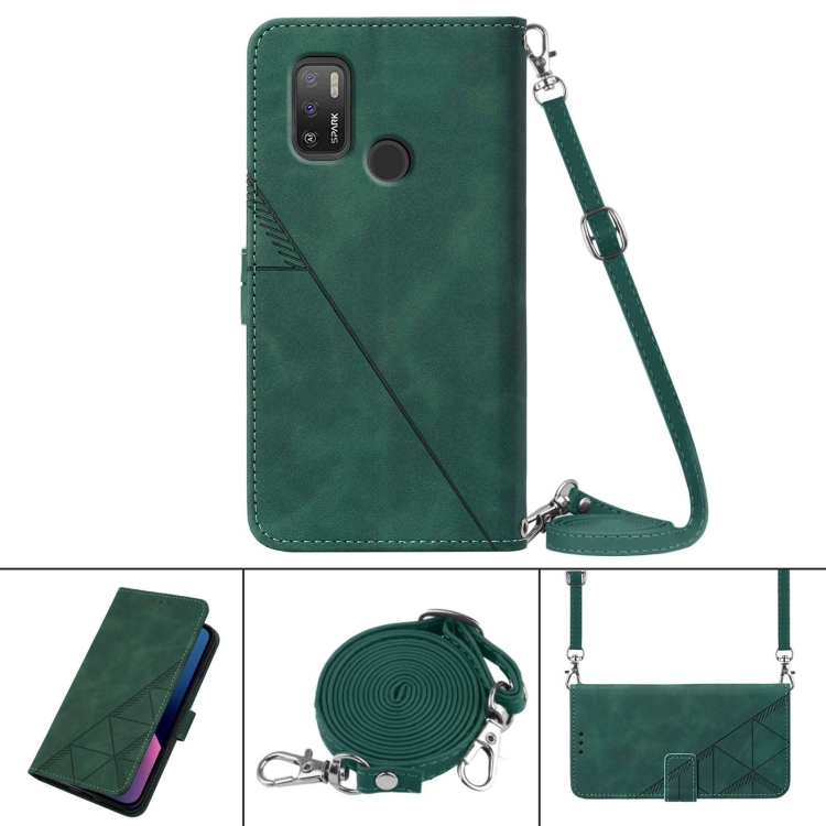 Funda de Cuero con Goma en Relieve para Tecno Spark 5 Air y Spark 6 Air Crossbody (Verde Oscuro)