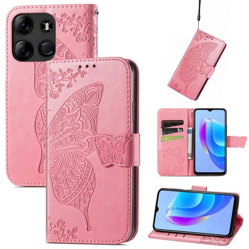 Funda de Cuero en Relieve para Tecno Spark Go 2023 Butterfly Love Flower (Rosa)
