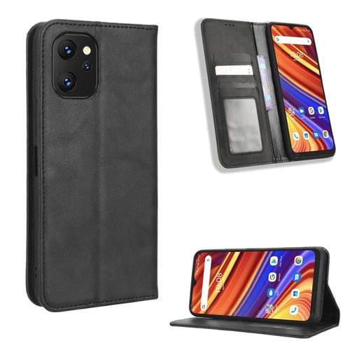Funda de Cuero para Umidigi Power 7 Max con Hebilla Magnética y Textura Retro (Negro)