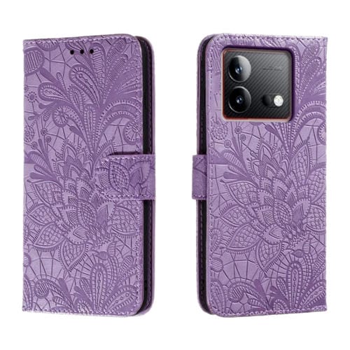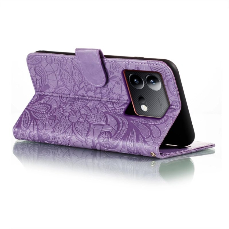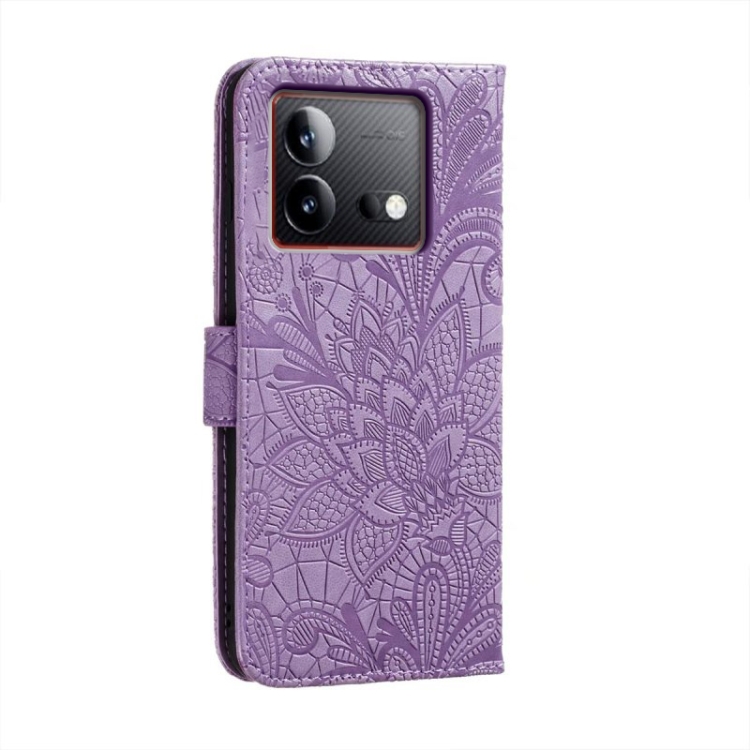 Para Vivo Iqoo Neo8 Funda para Teléfono de Cuero con Tapa y Estampado de Flores de Encaje (Púrpura)