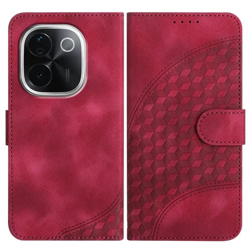 Para Vivo Iqoo Z9S Pro / T3 Pro 5G India Yx0060 Funda de Cuero para Teléfono con Relieve de Cabeza de Elefante y Cordón (Rosa Rojo)