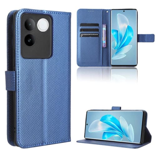 Para Vivo S17E Caja del Teléfono de Cuero con Textura de Diamante (Azul)
