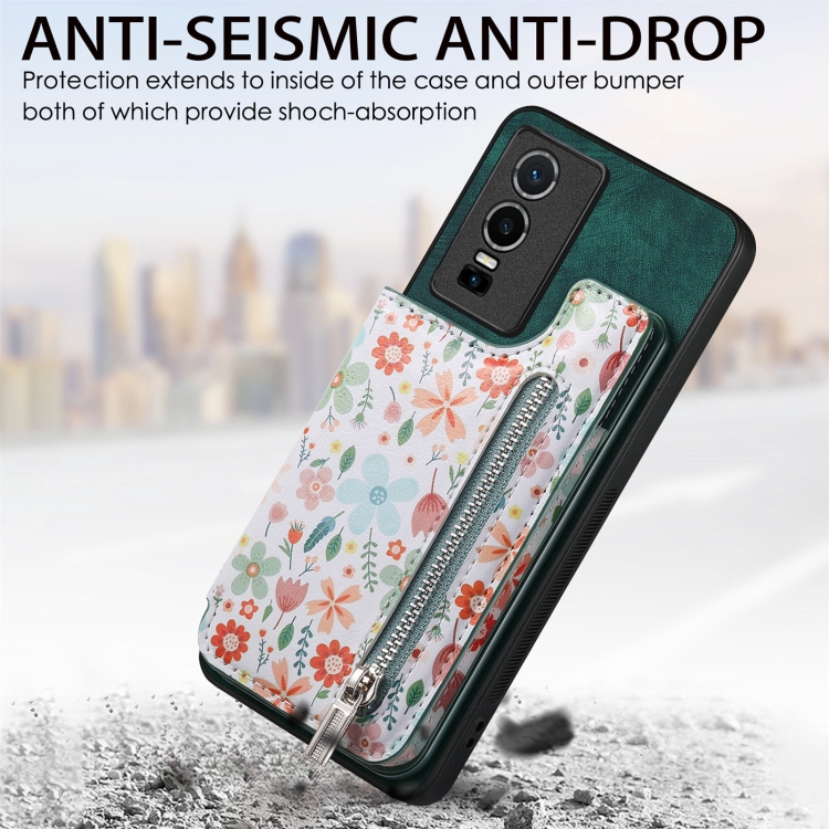 Para Vivo V25 Estuche para Teléfono con Billetera con Cremallera Pintada Retro (Verde)