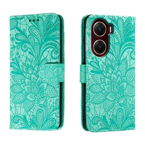 Para Vivo V29E Funda para Teléfono de Cuero con Tapa y Estampado de Flores de Encaje (Verde)