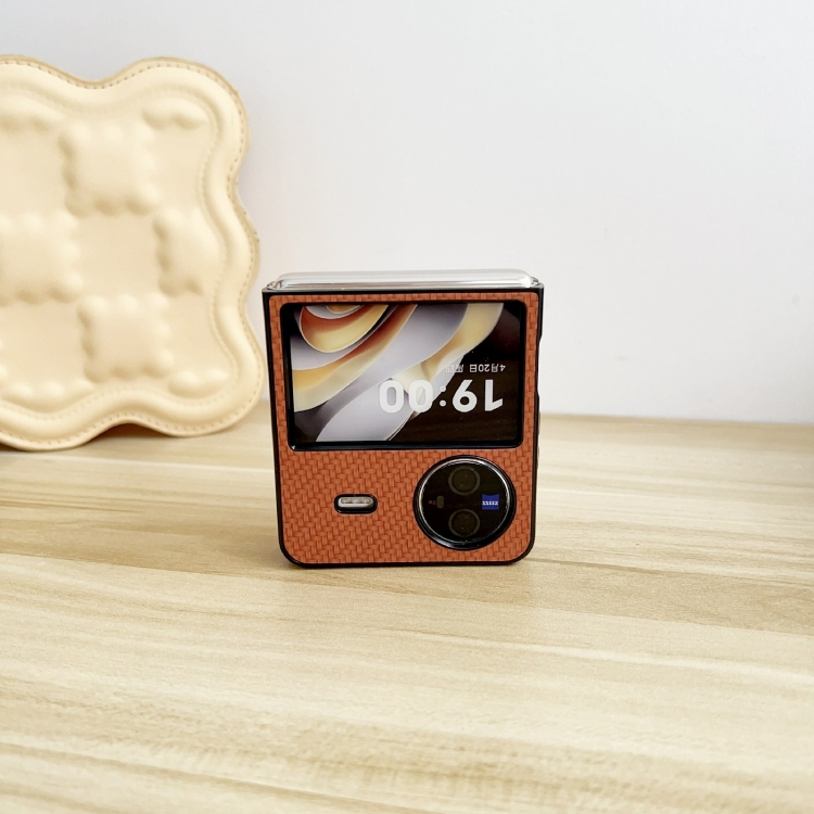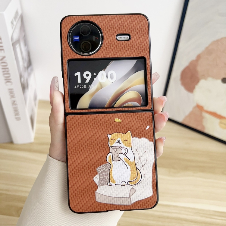 Para Vivo X Flip Funda para Teléfono con Patrón de Dibujo Coloreado con Textura Trenzada (Gato Café Marrón)