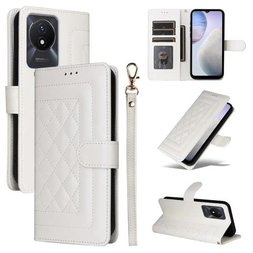 Para Vivo Y02 Diamond Lattice Funda de Cuero para Teléfono con Tapa (Blanco)