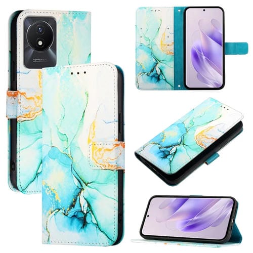 Para Vivo Y02A / Y02 / Y11 2023 / Y02T Pt003 Funda de Cuero con Tapa con Patrón de Mármol (Verde)