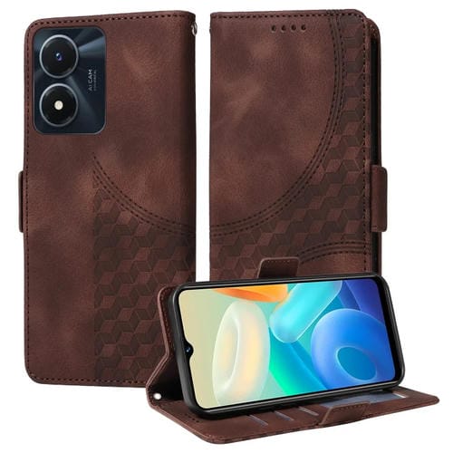 Para Vivo Y02S / Y56 5G Funda para Teléfono de Cuero Estrellado con Rombo En Relieve Global (Marrón)