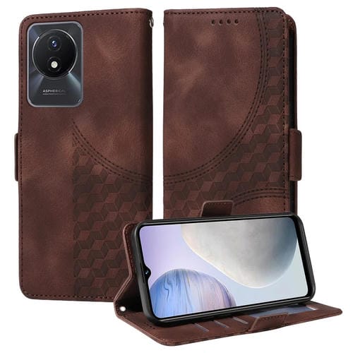 Para Vivo Y11 2023 / Y02 4G Funda para Teléfono de Cuero Estrellado con Rombos En Relieve (Marrón)