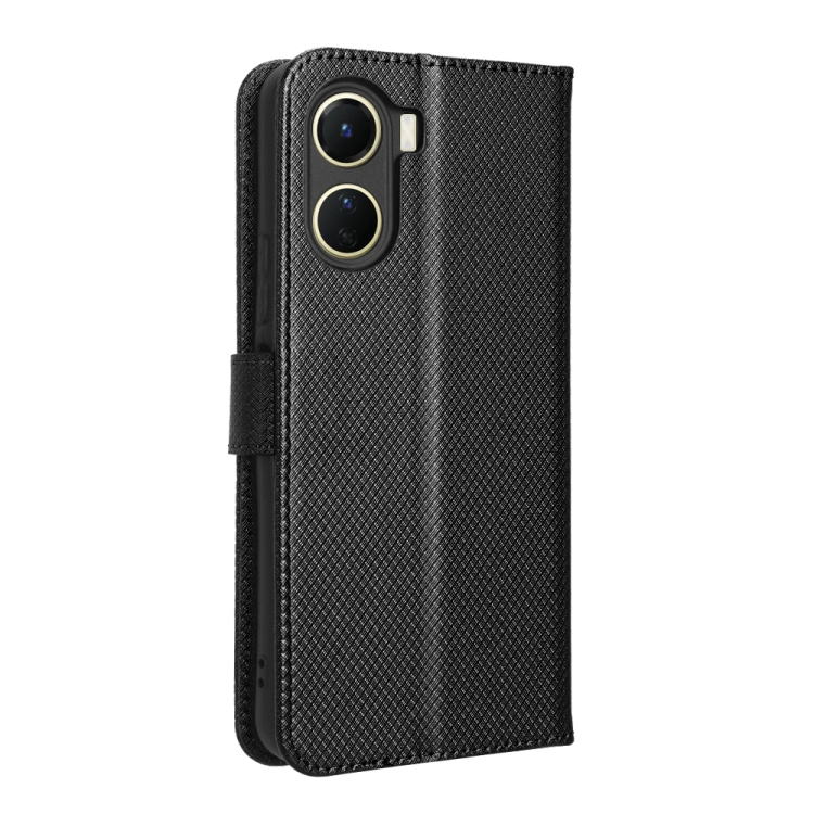 Para Vivo Y16 / Iqoo Z7I Caja de Teléfono de Cuero con Textura de Diamante (Negro)