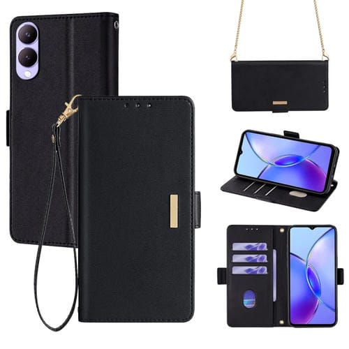 Para Vivo Y17S 4G Funda de Cuero para Teléfono con Cadena Cruzada (Negro)