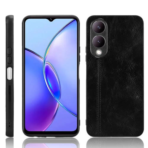 Para Vivo Y17S 4G Funda para Teléfono con Contraportada de Costura con Patrón de Vaca Global (Negro)