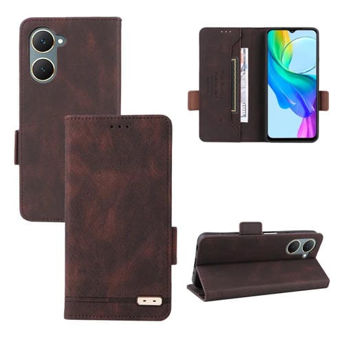Para Vivo Y18 / Y03 Funda de Cuero para Teléfono con Cierre Magnético (Marrón)