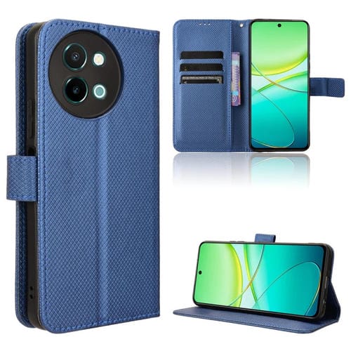 Para Vivo Y38 5G / Y200I 5G Funda de Cuero con Textura de Diamante para Teléfono (Azul)