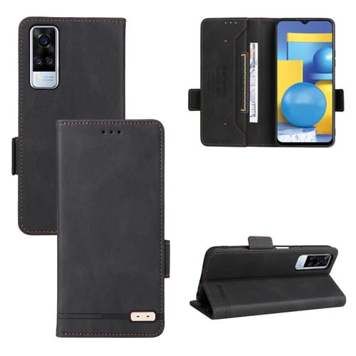 Para Vivo Y51 2020 / Y31 2021 Clascar Magnético Caja de Cuero (Negro)
