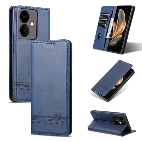 Para Vivo Y78+/Y78 Global Azns Funda de Teléfono de Cuero con Textura de Becerro Magnético (Azul Oscuro)