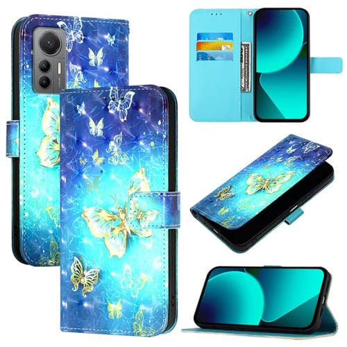 Para Xiaomi 12 Lite Funda para Teléfono de Cuero con Tapa Horizontal con Pintura 3D (Mariposa Dorada)