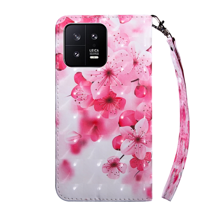 Para Xiaomi 13 Estuche para Teléfono de Cuero con Patrón Pintado En 3D (Flor Roja)