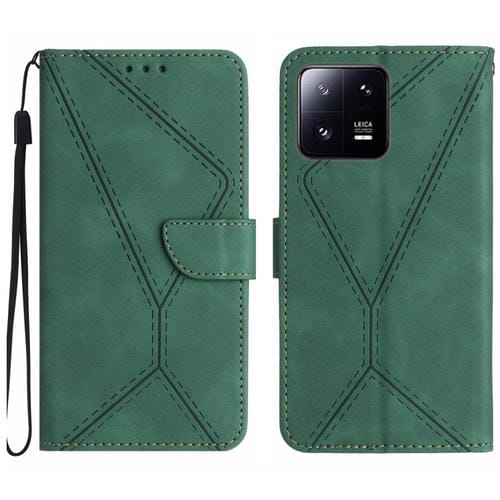 Para Xiaomi 13 Pro Estuche para Teléfono de Cuero con Costuras En Relieve (Verde)