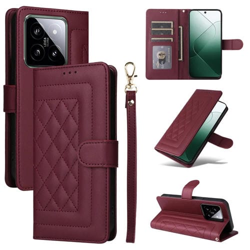 Para Xiaomi 14 5G Diamond Lattice Funda De Cuero Para Teléfono Con Tapa (Rojo Vino)