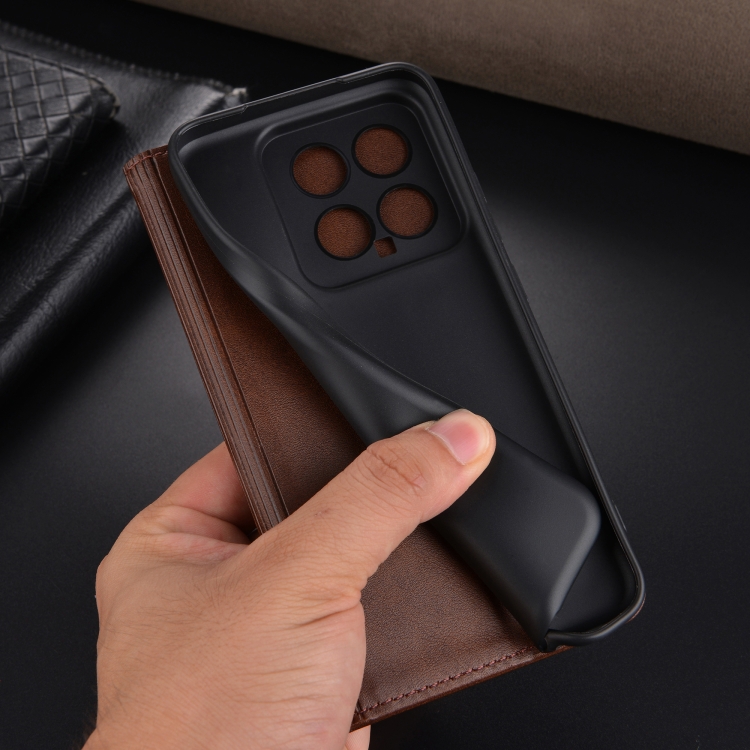 Para Xiaomi 14 Azns Funda De Teléfono De Cuero Con Tapa Con Textura De Becerro Magnética (Marrón Claro)