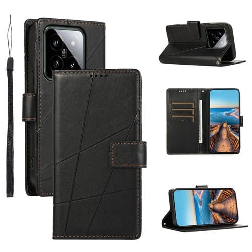 Para Xiaomi 14 Pu Funda De Teléfono Con Línea En Relieve Con Textura De Cuero Genuino (Negro)