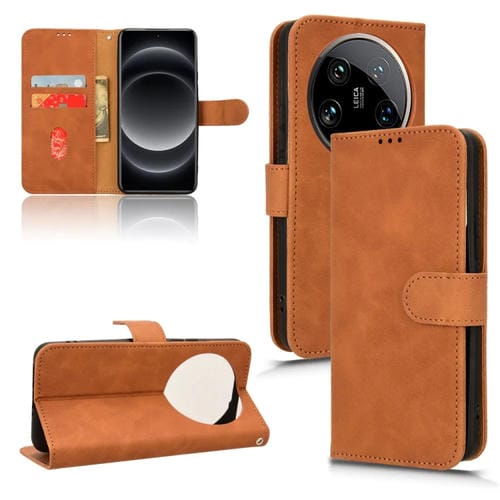 Para Xiaomi 14 Ultra Skin Feel Funda De Teléfono De Cuero Con Tapa Magnética (Marrón)