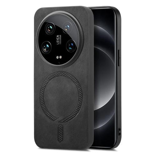 Para Xiaomi 14 Ultra Solid Color Retro Magsafe Pu Funda Para Teléfono Con Contraportada (Negro)