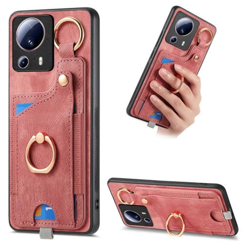Para Xiaomi Civi 2 Funda para Teléfono con Bolsa para Tarjeta con Anillo y Sensación de Piel Retro con Lazo para Colgar (Rosa)