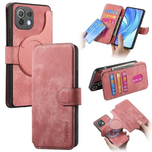 Funda Neo Magsafe Rfid Antirrobo de Cuero Retro para Xiaomi Mi 11 Lite (Rosa)