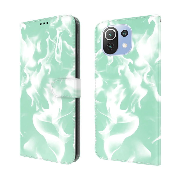 Para Xiaomi Mi 11 Lite Nube Pattern Horizontal Flip Funda de Cuero con Soporte y Ranura para Tarjeta y Billetera (Menta Verde)