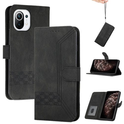 Para Xiaomi Mi 11 Pro Cubic Skin Sientir Funda de Cuero con Voltear (Negro)