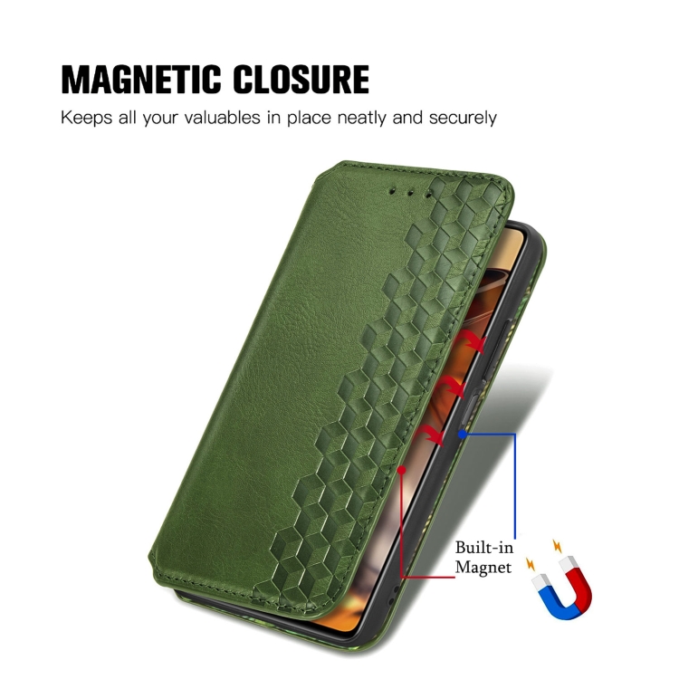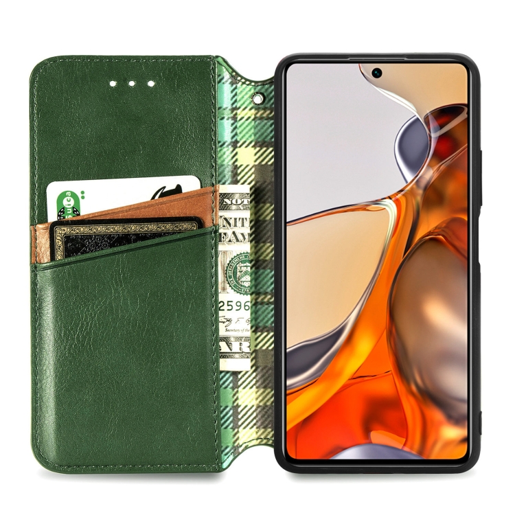 Para Xiaomi Mi 11T / Mi 11T Funda de Cuero Magnética de la Rejilla Horizontal Prensada con El Soporte y Las Ranuras y la Cartera (Verde)