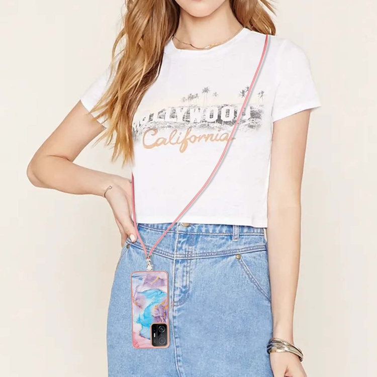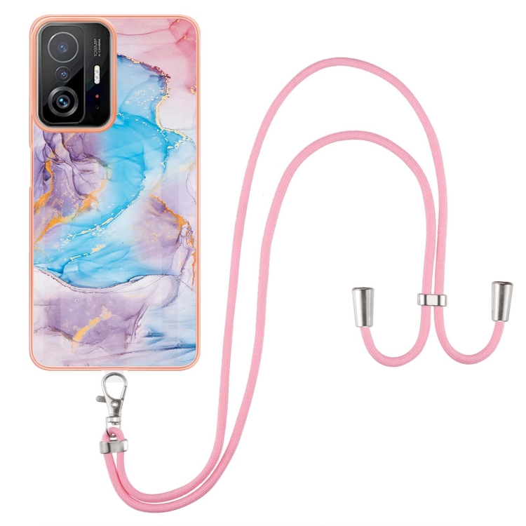 Para Xiaomi Mi 11T / Mi 11T Pro Gallo Electroplastia Imd TPU Funda Telefónica con Cordón (Mármol Azul)