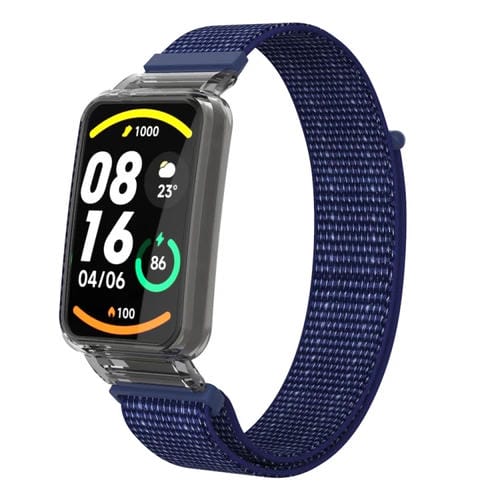 Estuche Protector para Xiaomi Mi Band 7 Pro + Correa Nylon con Lazo (Azul Índigo)