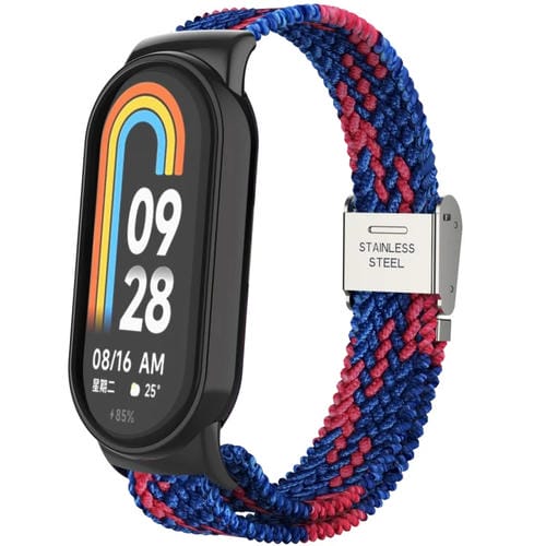 Correa para Xiaomi Mi Band 8 Metal Head con Hebilla de Acero y Nailon Ajustable (Azul Rojo)